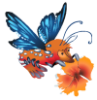 Description: a prawn-like animal with butterfly wings, rendered in a vector style. it is holding an orange flower.